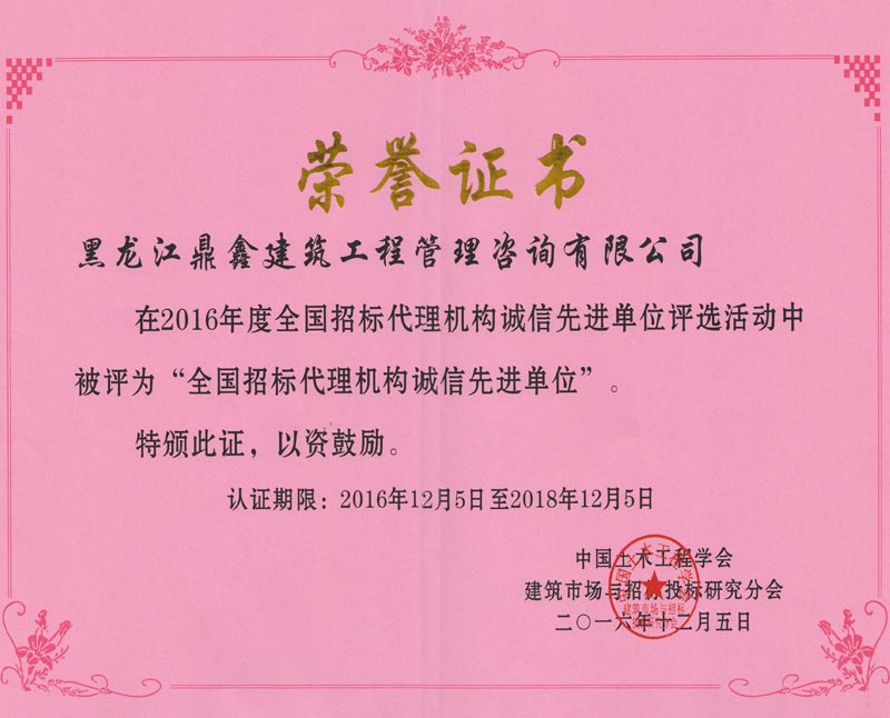 黑龍江鼎鑫建筑工程管理咨詢有限公司成立于2005年,注冊資金400萬元。具備中華人民共和國住房和城鄉(xiāng)建設部批準的工程招標代理機構資格、中華人民共和國財政部批準的政府采購招標代理機構資格、黑龍江省商務廳批準的機電產(chǎn)品國際招標代理機構資格、中華人民共和國住房和城鄉(xiāng)建設部批準的工程造價咨詢甲級資質、黑龍江省住房和城鄉(xiāng)建設廳批準的房屋建筑工程監(jiān)理乙級(市政公用工程監(jiān)理乙級資質)。主要從事建設工程及政府采購招標、造價咨詢、工程監(jiān)理、項目管理等業(yè)務。